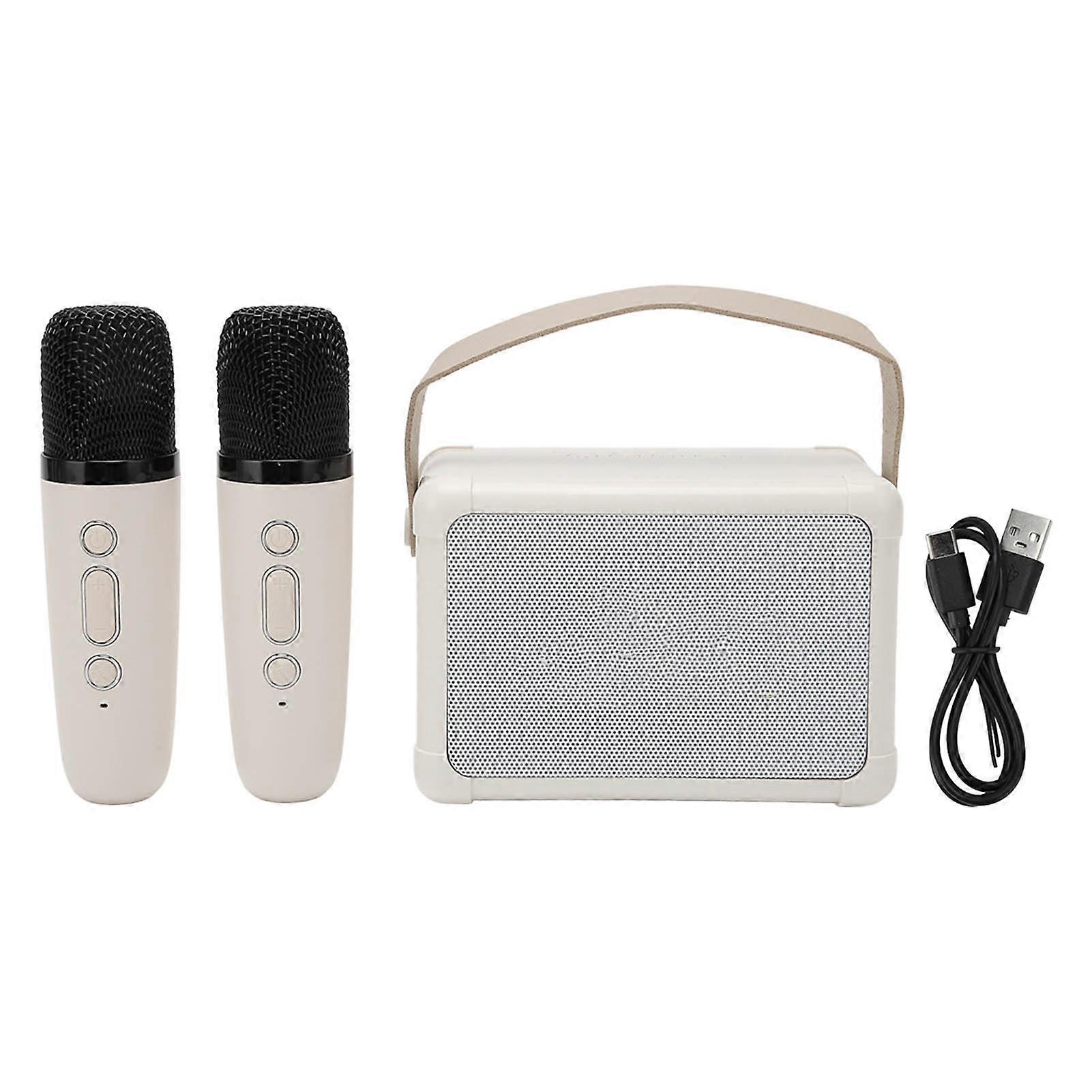 Mini Karaoke Machine HiFi Dynamic Light Portable Bluetooth Speaker with 2 Wireless Microphone for Kids Adults Beige