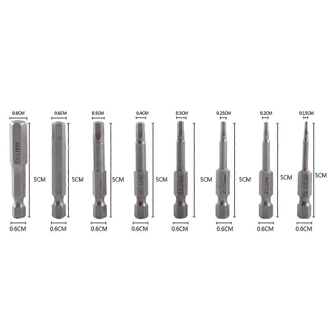 High quality 8-piece set 1/4 handle hexagonal screwdriver bit S2 (H1.5-H8) (50mm long)