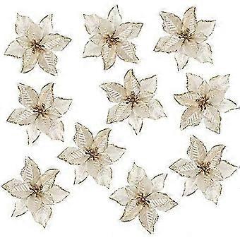 زهور عيد الميلاد الزفاف الاصطناعي زهور عيد الميلاد بريق شجرة عيد الميلاد الحلي (10 قطع) (ذهبي)
