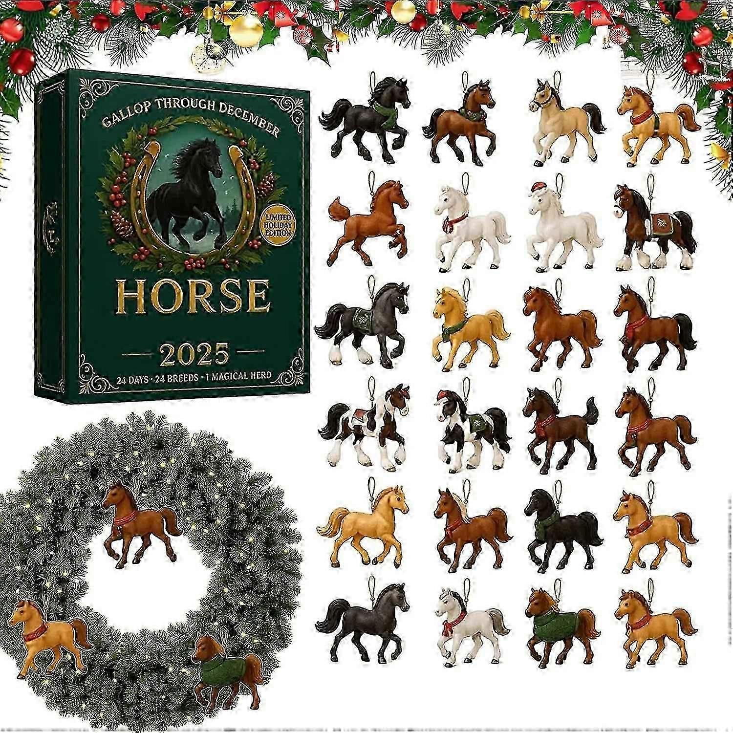 Horse Advent Calendar 2025, 24 Days Christmas Countdown Calendar with 24 Different 2D Acrylic Mini H