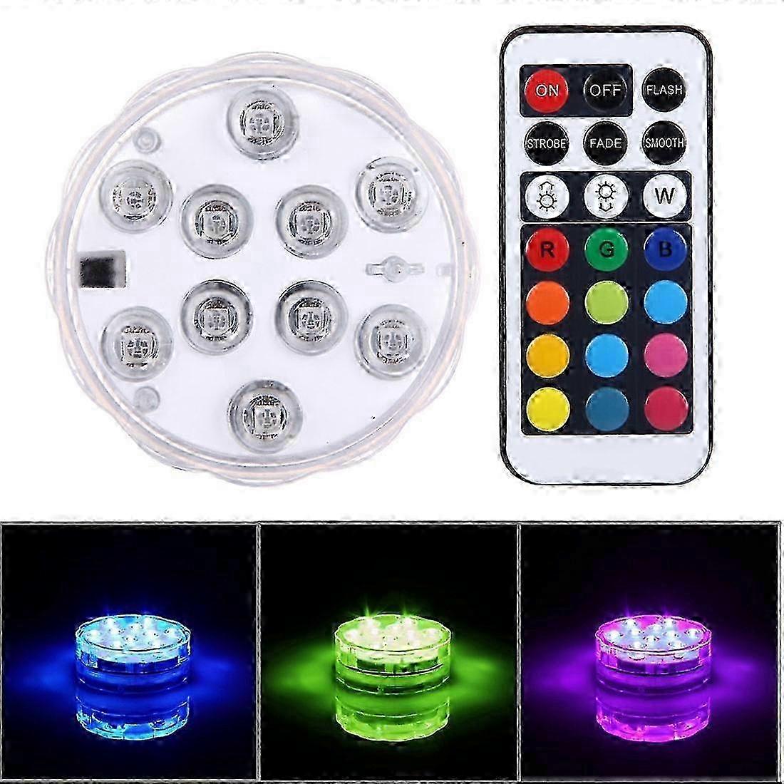 Hot Waterproof Submersible LED Light, 10 LEDs Cylinder Remote Controlled with Remote Controllor, Remote Control Range(in Open Area): 24-30 Feet