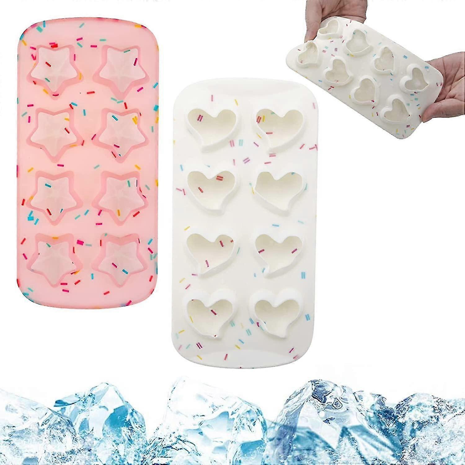 Ice cube mold, ice cube silicone mold, 2 pieces heart shape and star shape silicone ice cube mold, ice cube tray, LFGB certified and BPA-free ice cube