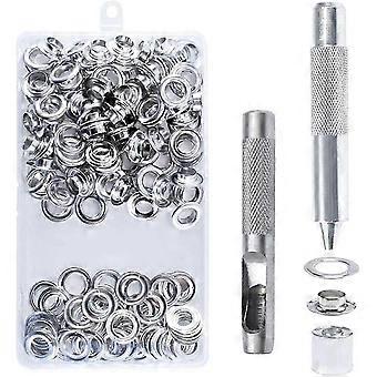 2026 100 kpl silmukkasettejä 14 mm:n läpivientisarja silmukkatyökalut metalliläpivientisarja silmukkatyökaluilla kangaspressujen teltan korjaukseen hopea