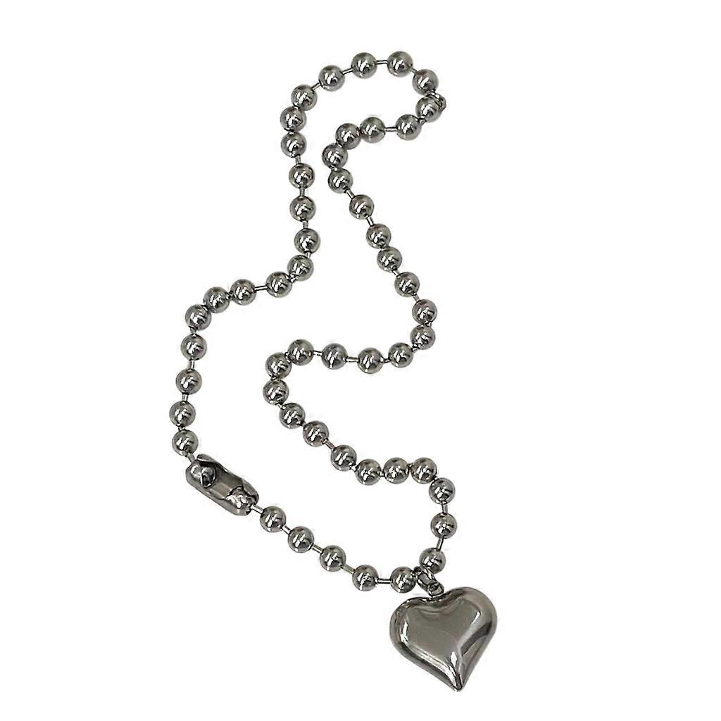 Korean Round Bead Chain Silver Love-shape Pendant Necklace Ins Clavicle Chain