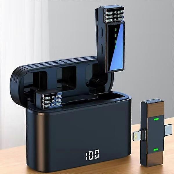 J68 Warehouse Wireless Microphone Black One for Two [Noise Reduction + Reverb + Silence] Compatible with Iphone and Type-C