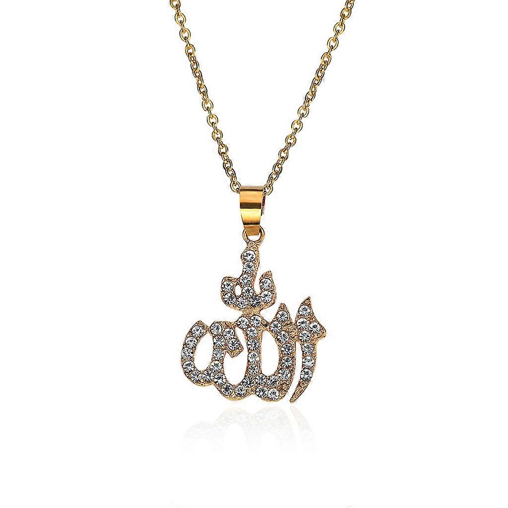 Arabic Muslim Womens Gold for Rhinestone Islamic God Allah Pendant Necklace Jewe