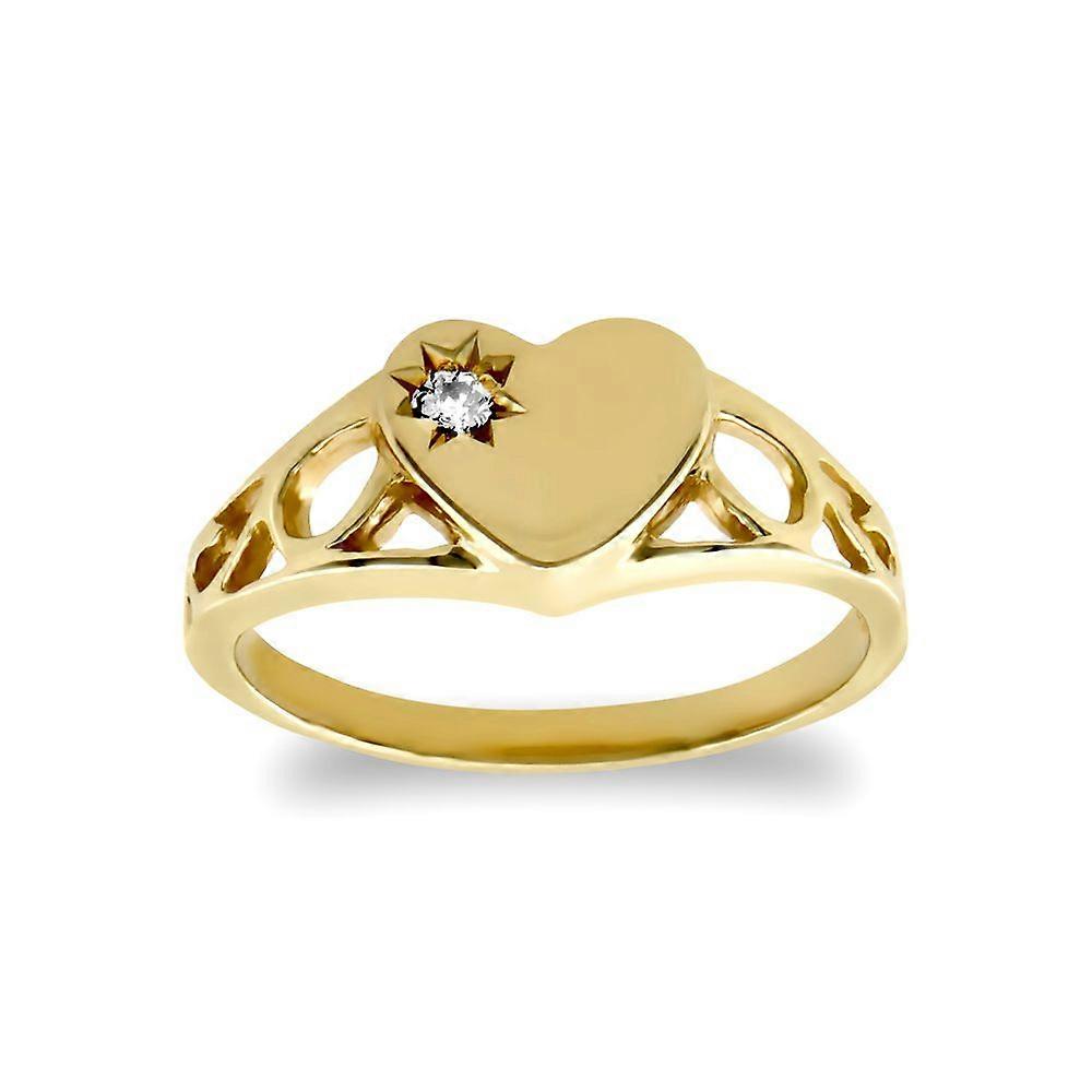 Jewelco London Girls Solid 9ct Yellow Gold Solitaire Love Heart Signet Baby Ring