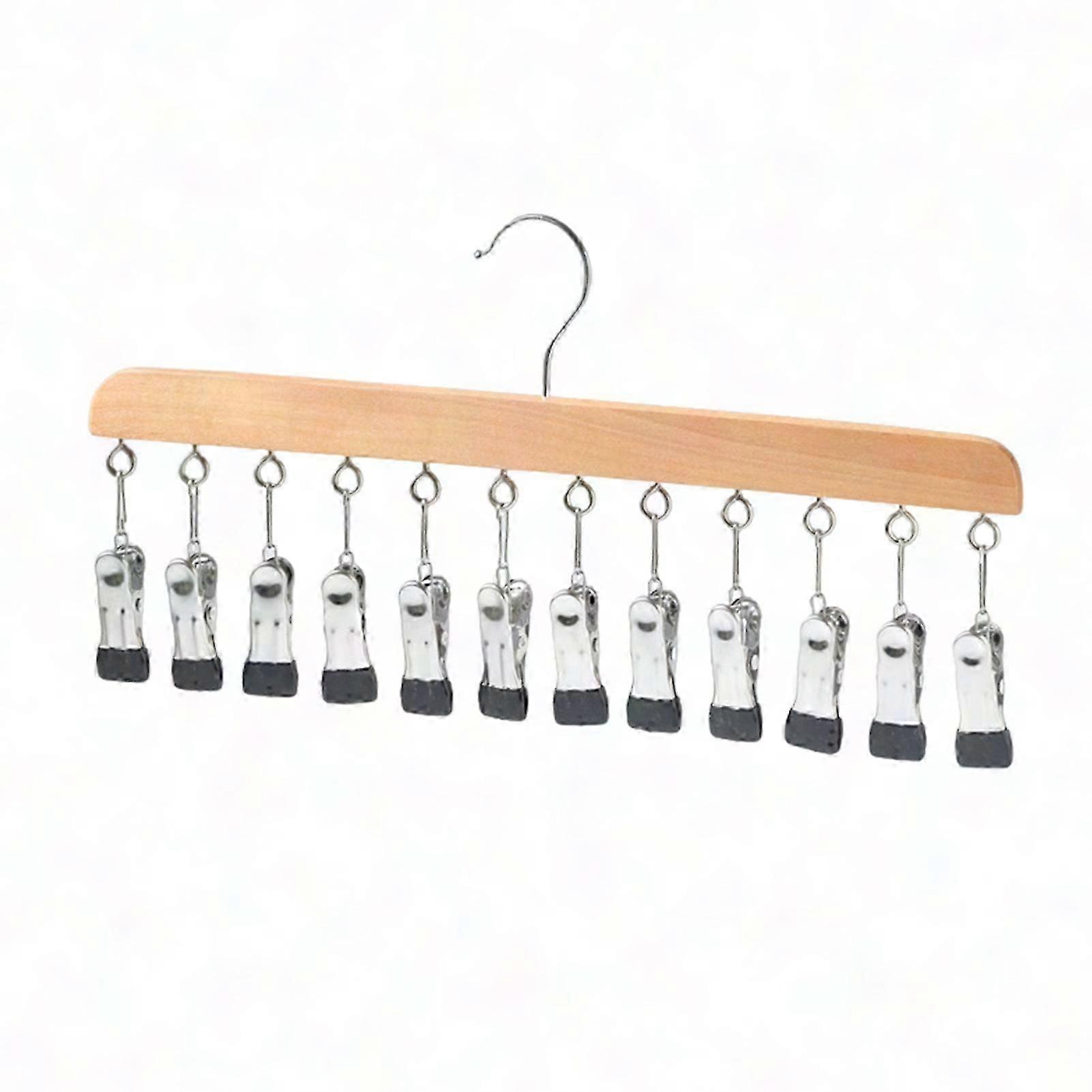 Jikaixiang 12 Clip Wooden Clothes Drying Rack - Windproof Sock Underwear Hat Bra Towel Hanger Organizer
