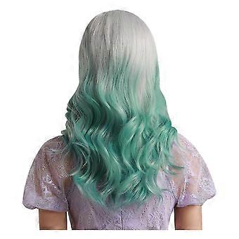 50cm ارتفاع درجة الحرارة الحرير كوس الباروكة الفضة الأخضر كامل الرأس موجة مجعد الشعر مع روز نت