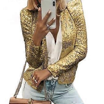 المرأة \ الترتر سترة مفتوحة الجبهة عارضة طويلة الأكمام كارديغان معطف طوق بريق سترة قصيرة