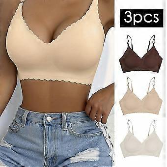 Juege* 3pcs Wavy Trim Seamless Bralettes, Comfortable & Breathable Wireless Intimates Bras, Women's Lingerie & Underwear