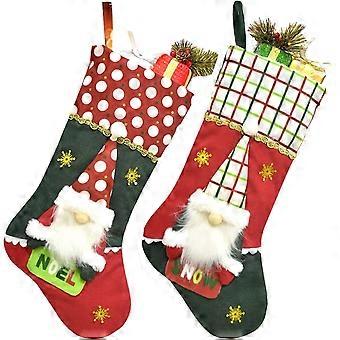 2 pakkausta 3D joulupukin joulusukat, 18" henkilökohtainen muhkea sukka joulu roikkuvat sukat kodin takkapuun koristeluun