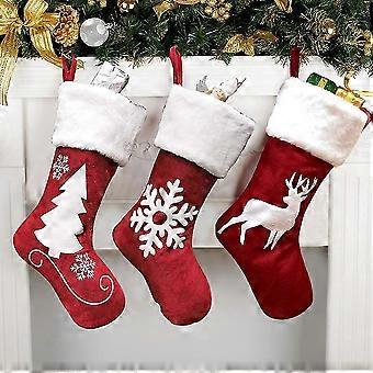 Uudet, sopivat joulusukat, iso 3-osainen setti, 18-tuumaiset punaiset joulusukat porolla ja muhkealla tekosukalla