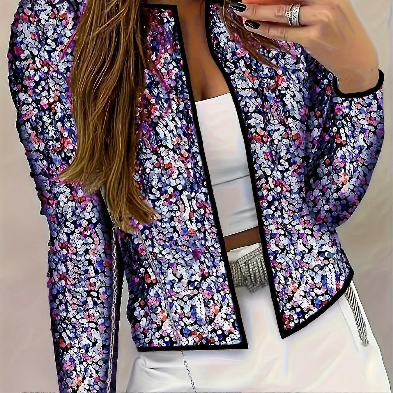 JUNGE Colorful Sequined Open Front Jacket, Casual Long Sleeve Outwear, Women's Clothing SZJG240306
