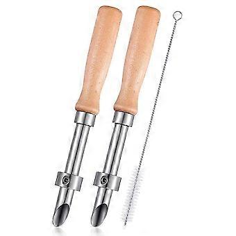 2 عبوة من الفولاذ المقاوم للصدأ من القش ثقب المثقاب للأغطية البلاستيكية - كأس عصير الليمون مع مقبض خشبي