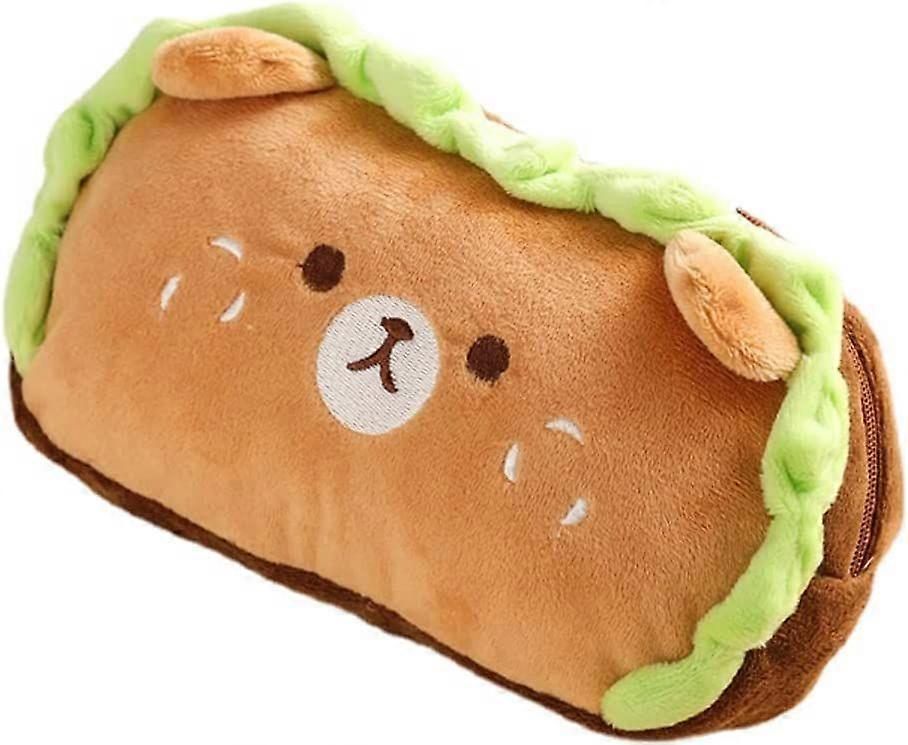 Kawaii School Supplies Cartoon Embroidery Pencil Case Plush Burger Multi-Functional Large-Capacity Pencil Pouch (Bear Burger)