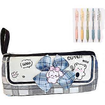 Kawaii Bow Large-capacity Pencil Case, Is Japanese Stationery Box With Jk Preppy Style Multi-layer Plaid Storage Bag (black+5 Pens)