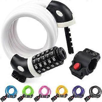 قفل سلك الدراجة 4ft عالية الأمن 5 أرقام قفل مجموعة الدراجات (أبيض)