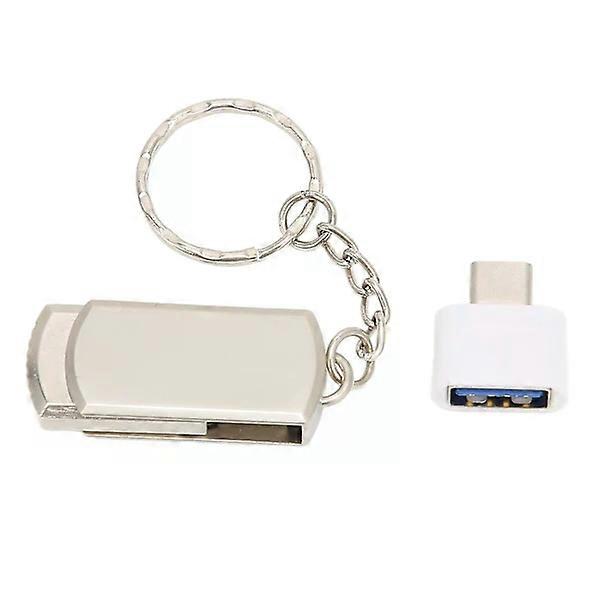 Keychain Flash Drive USB3.0 Mobile Phone Computer Dual Use Portable Aluminum Alloy U Disk with TypeC Adapters (16GB Silver) YC