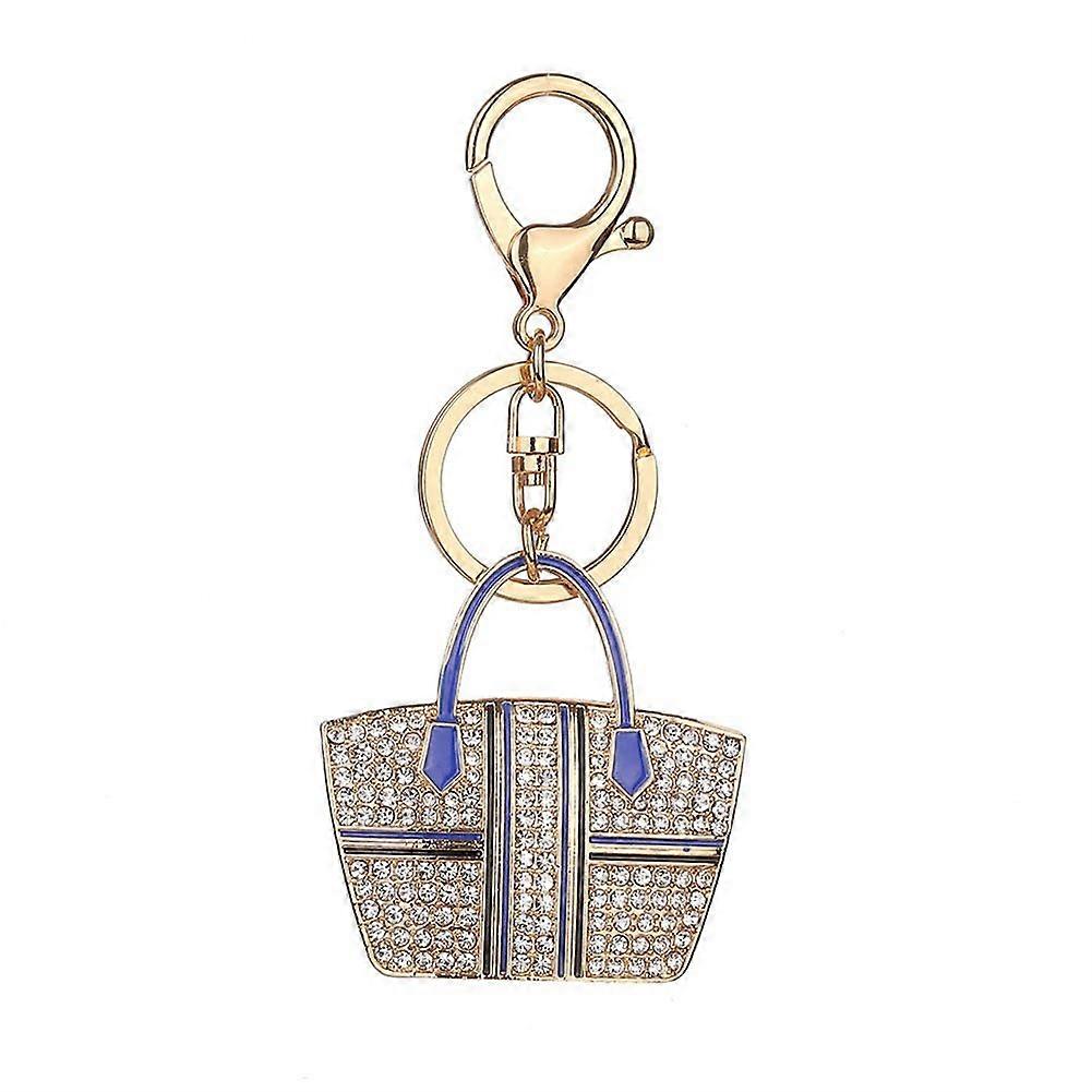 Crystal Rhinestone Keyring Key Chain with Snap Button Bag Car Pendant Hanging Decor Gift(Blue)