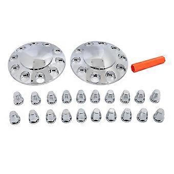 زوج من الكروم غطاء المحور الأمامي مجموعة أغطية محور العجلة اللامعة مع أغطية الجوز العروة 33 مم للشاحنات والمقطورات والمركبات