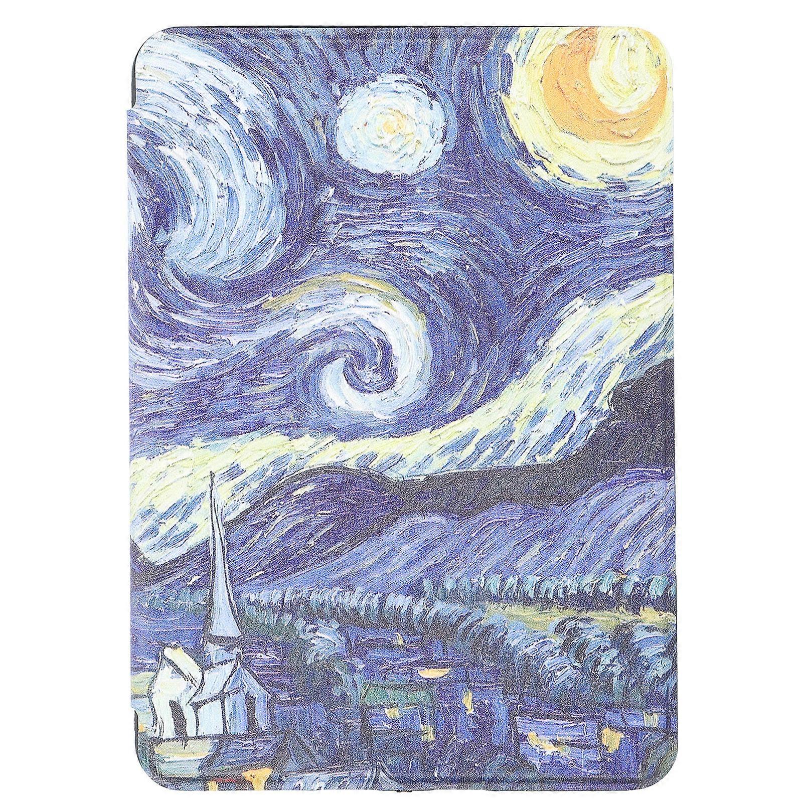 Kindle Paperwhite Case 2018 4th Generation Ultra Slim Lightweight Leather Cover Van Gogh Starry Sky Design