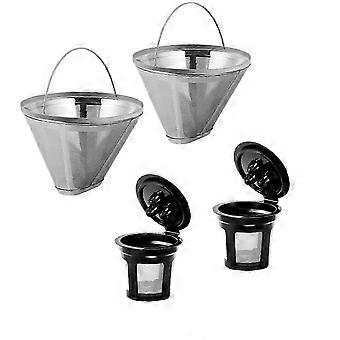 2-Pack Reusable Coffee Filter, Compatible with 8-12 Cup Drip Coffee Makers, No.4 Basket Style Replacement Filters