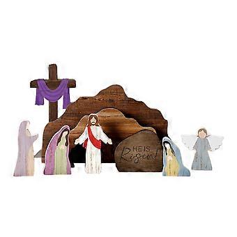 Pääsiäisen ylösnousemuskohtaukset, pääsiäiskohtaus, puukoristeet, 4 tyhjän haudan ristin sarja, sopii uskonnollisiin kodinsisustukseen, monivärinen