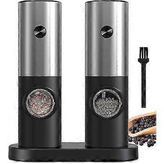 Sähköinen automaattinen pippurimylly, säädettävä karkeus, akkukäyttöinen mustapippurimylly, helppo maustaminen, 2 kpl