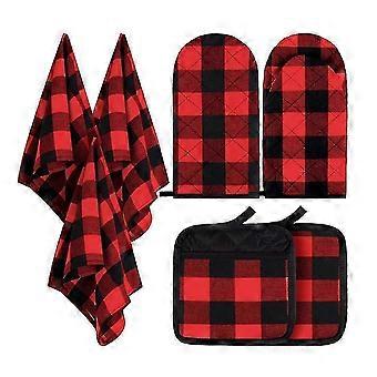 6-osainen buffalo check -kokoelma, klassinen maalaistyylinen pöytäsetti, lautasliinasetti, ruudulliset lautasliinat, puuvillaiset keittiöpyyhkeet, 3 punaista ja 3. 2025