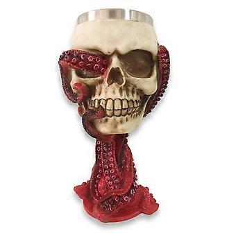 Kallopikari realistisella kallokuviolla, ruostumattomasta teräksestä valmistettu keskiaikainen pikari halloween-juhliin
