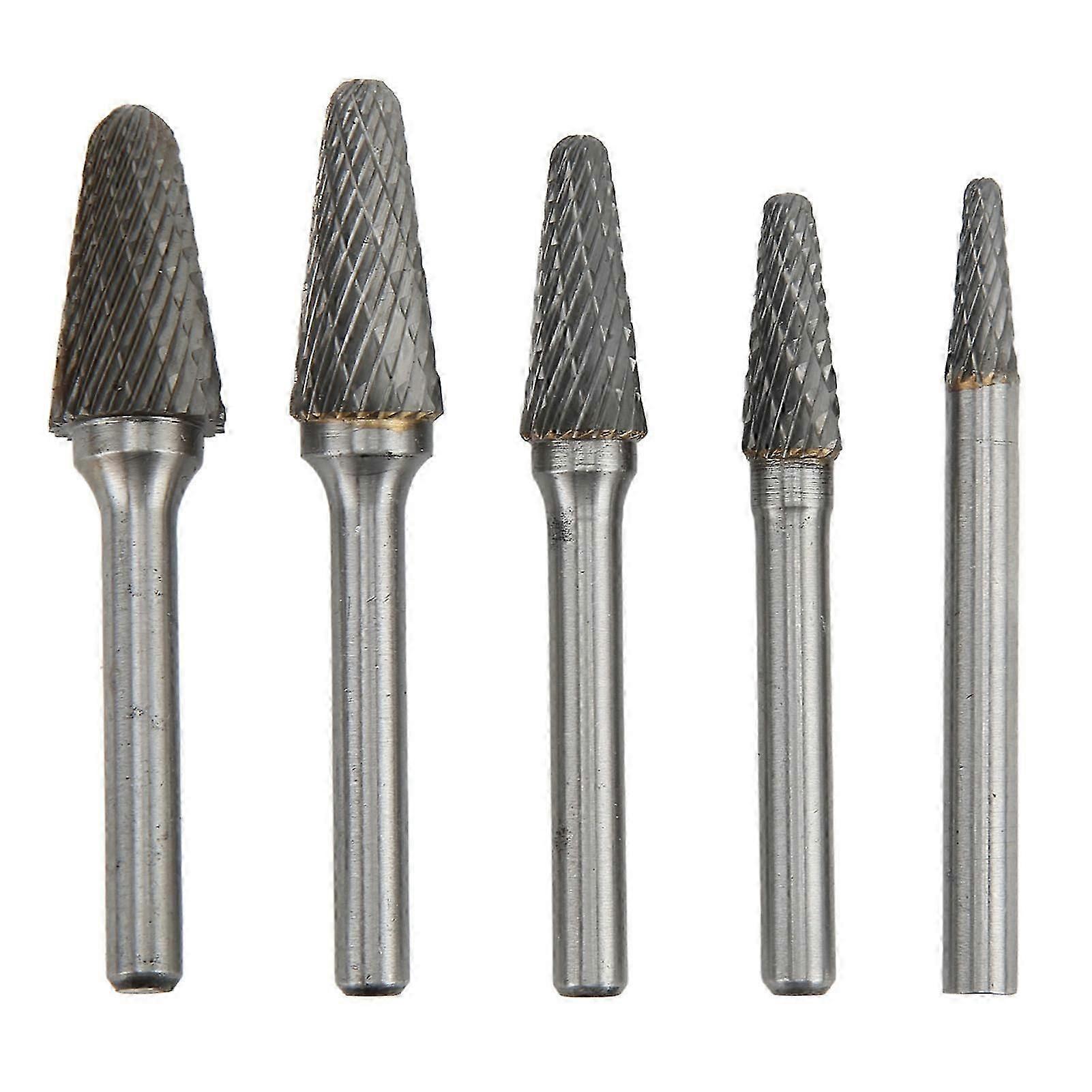 L Type 5pcs Carbide Rotary Burr Set Double Cut 6mm Shank Rotary Files for Engraving Polishing Grinding