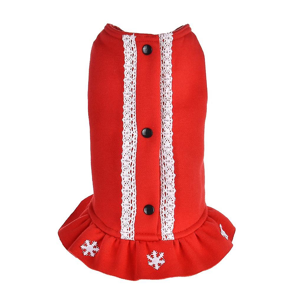 Snow Flake Pattern Puppy Warm Jacket Dogs Costume Teddy Dress Clothing Red L