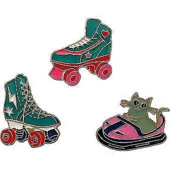 3 قطعة المينا طية صدر السترة دبوس مجموعة الزلاجات على الجليد لطيف الكرتون الوفير سيارة شارة طوق بروش CY A
