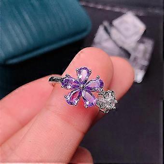 هدية لمحبي الصديقة 925 فضة إسترليني طبيعية Asche Amethyst خاتم نسائي 6 * 6 مم Yougang
