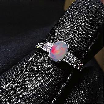 هدية لصديقة محبي 925 فضة إسترليني مطعمة طبيعية أسود أوبال خاتم تصنيع النار اللون جميل Yougang
