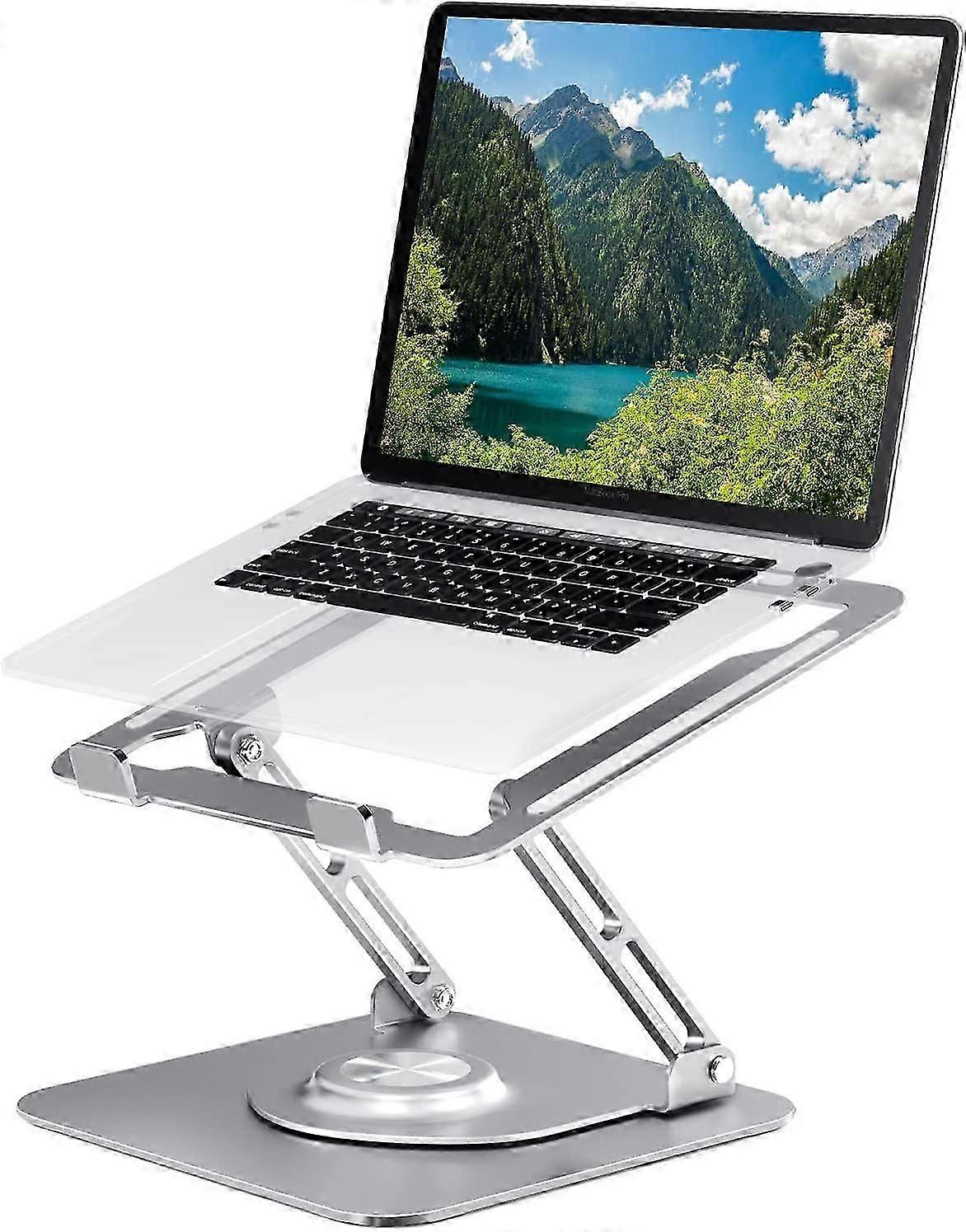 Laptop Stand 360 For Desktop Swivel Base Adjustable Height Foldable 10-17 Inches (Silver)