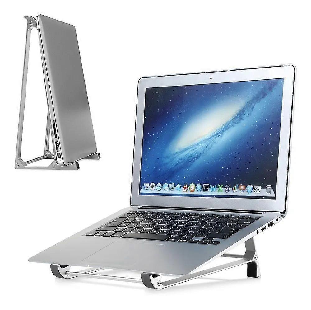 Broad compatibility. The Laptop Stand fits any 10-15.6 inch laptop and works with Apple MacBook, Mackbook Air, MacBook Pro and more. Ergonomic design provides comfortable typing and viewing angles for neck and shoulder pain relief. Durable aluminum body. The durable aluminum computer stand provides good stability, and the non-slip silicone pad effectively protects the laptop from damage. PORTABLE: The foldable and lightweight design makes it easy to put in a bag and take this portable desk stand to the office, coffee bar and anywhere. There is also a laptop table where you can relax in bed or on the sofa. KEEP IT CLEAN AND SAVE SPACE: The cable management feature on the back of this stand keeps your charging cables organized, while the folding feature helps save space and create a simple and clean environment when not in use.