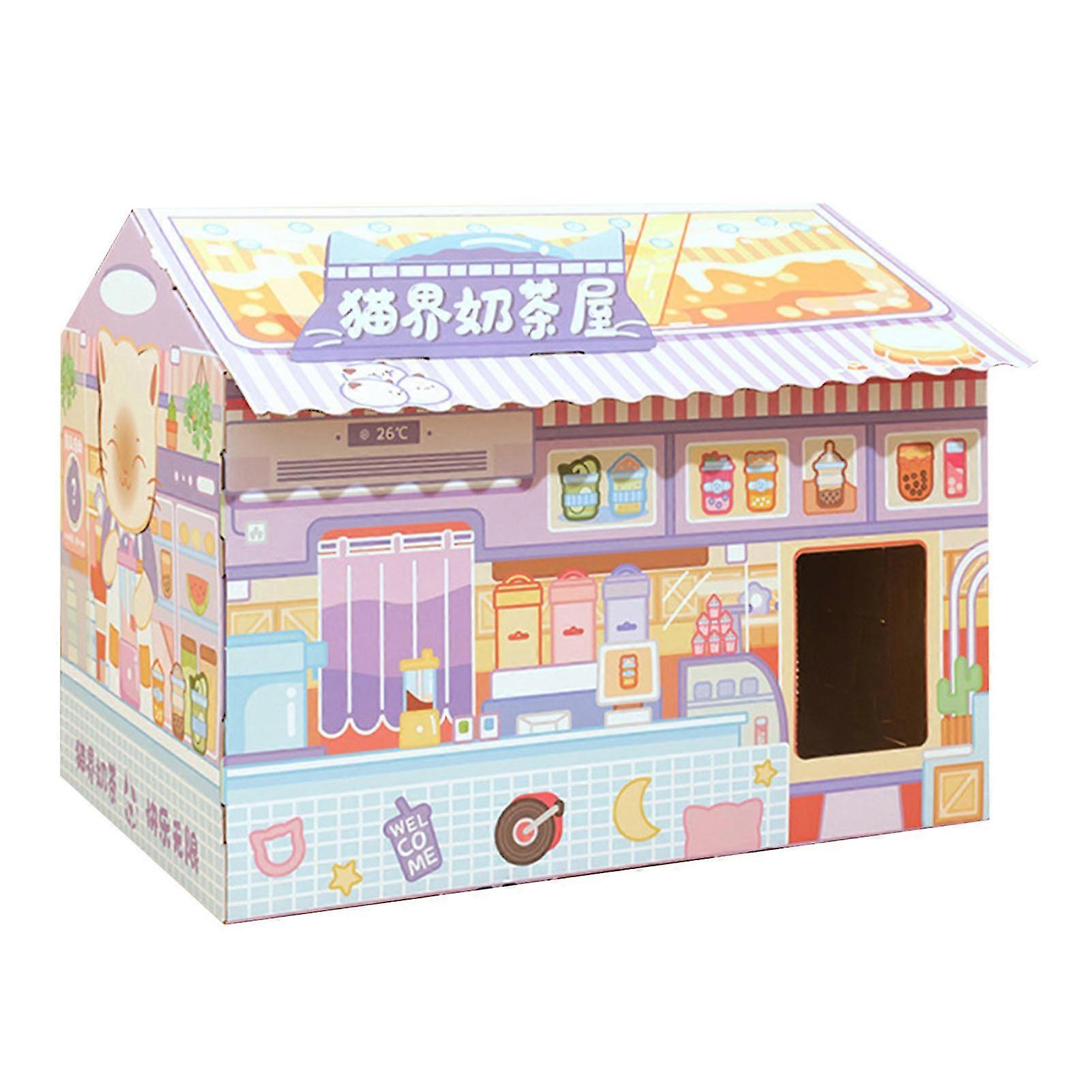 Large Space Cat House Scratching Card with Fun Claw Grinding Corrugated Scratchers and Cave Box Design