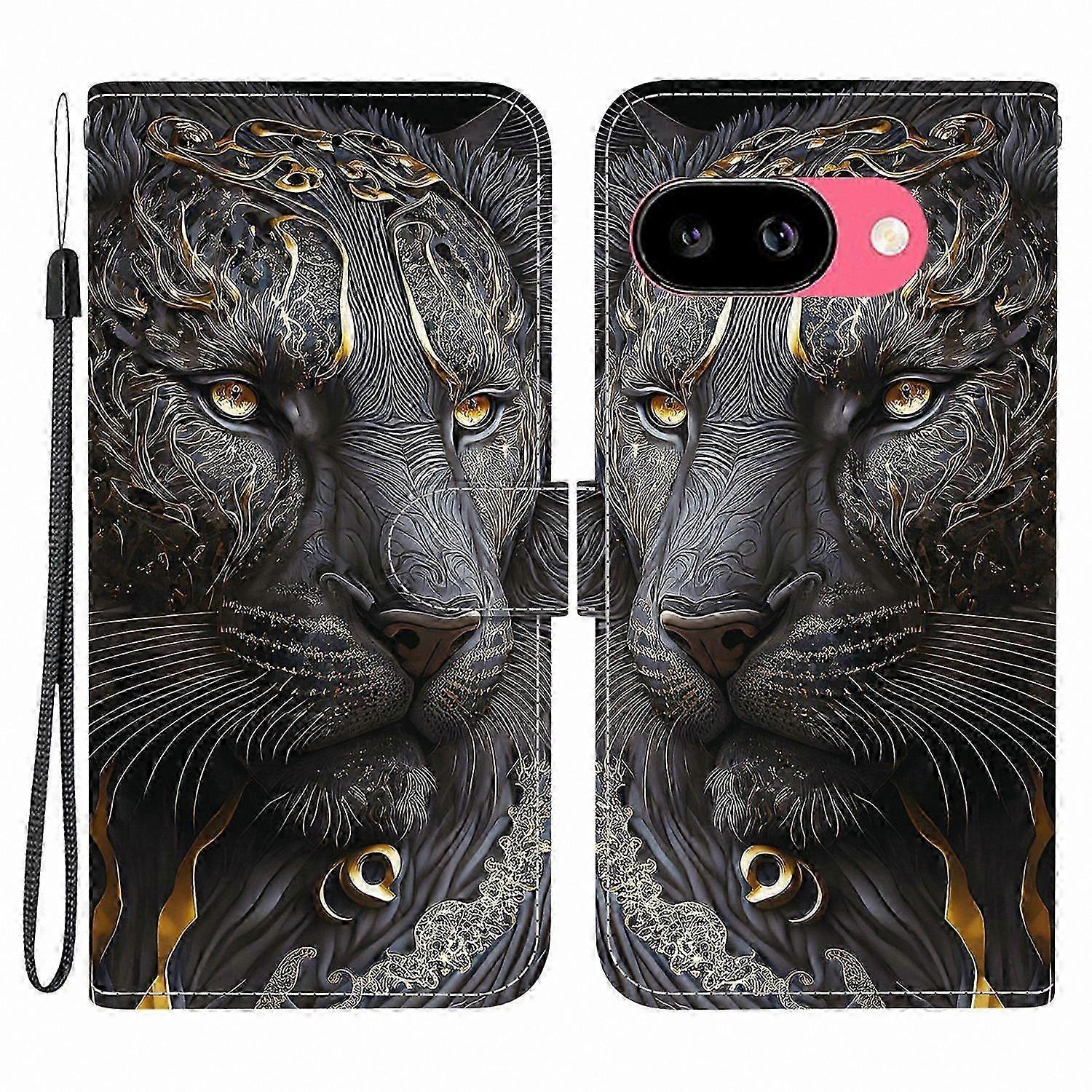 Leather Wallet Case with Stand Function and Wrist Strap for Pixel 9a, Pattern Printed Phone Cover