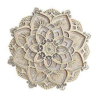 LED Night Light Modern Wall Decor with USB Ports Elegant Wooden Mandala Hanging MDF Panels Lamp Decoration DS