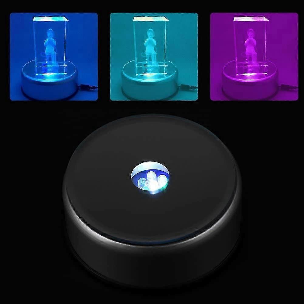 LED Colorful Light Rotating Crystal Display Base Stand Holder with Adapter