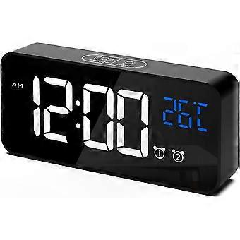 LED Alarm Clock with USB Charging, Temperature Display, Snooze, Dual Alarms, 12/24H Mode, 13 Music Tones (Black)