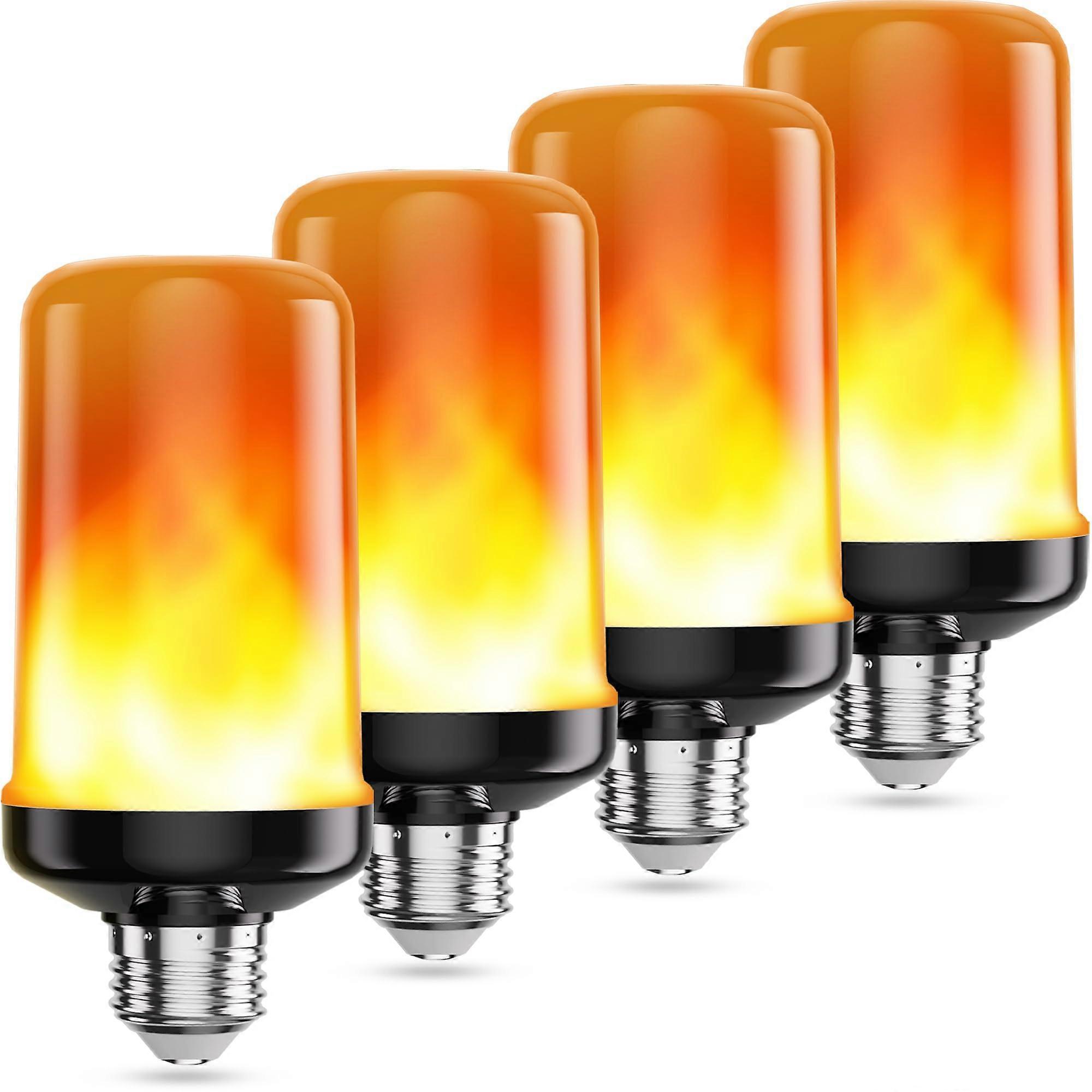 LED Flame Light Bulbs 4 Pack, E26 Base, Realistic Flickering Flame Effect, 4 Modes, Gravity Sensing, Energy Saving for Halloween and Christmas Decor