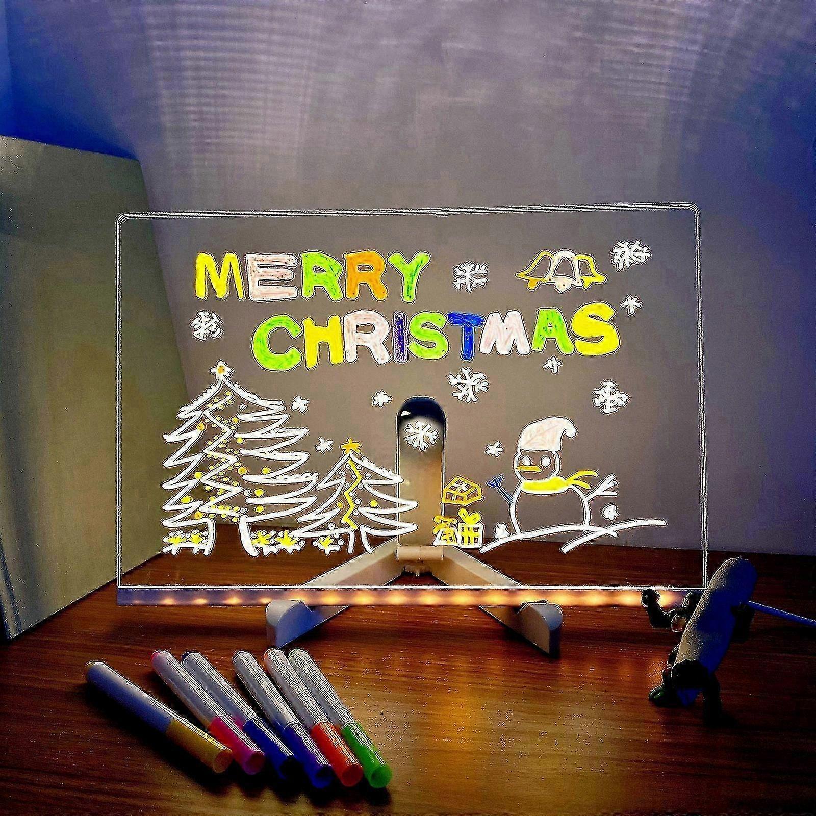 LED Light Up Acrylic Board with Stand, Transparent Desktop Memo Note for Christmas Gifting