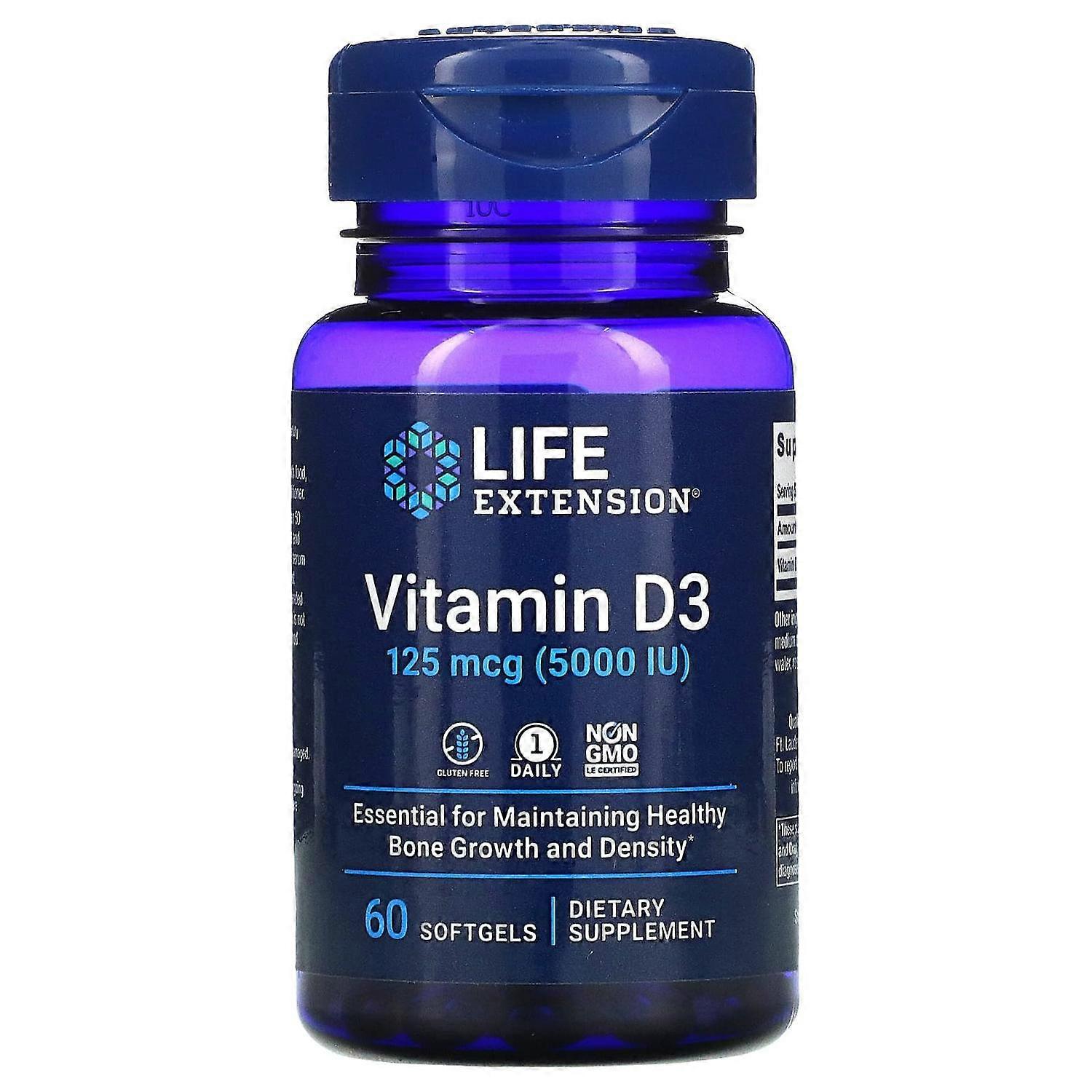 Life Extension, Vitamin D3, 125 mcg (5,000 IU), 60 Softgels