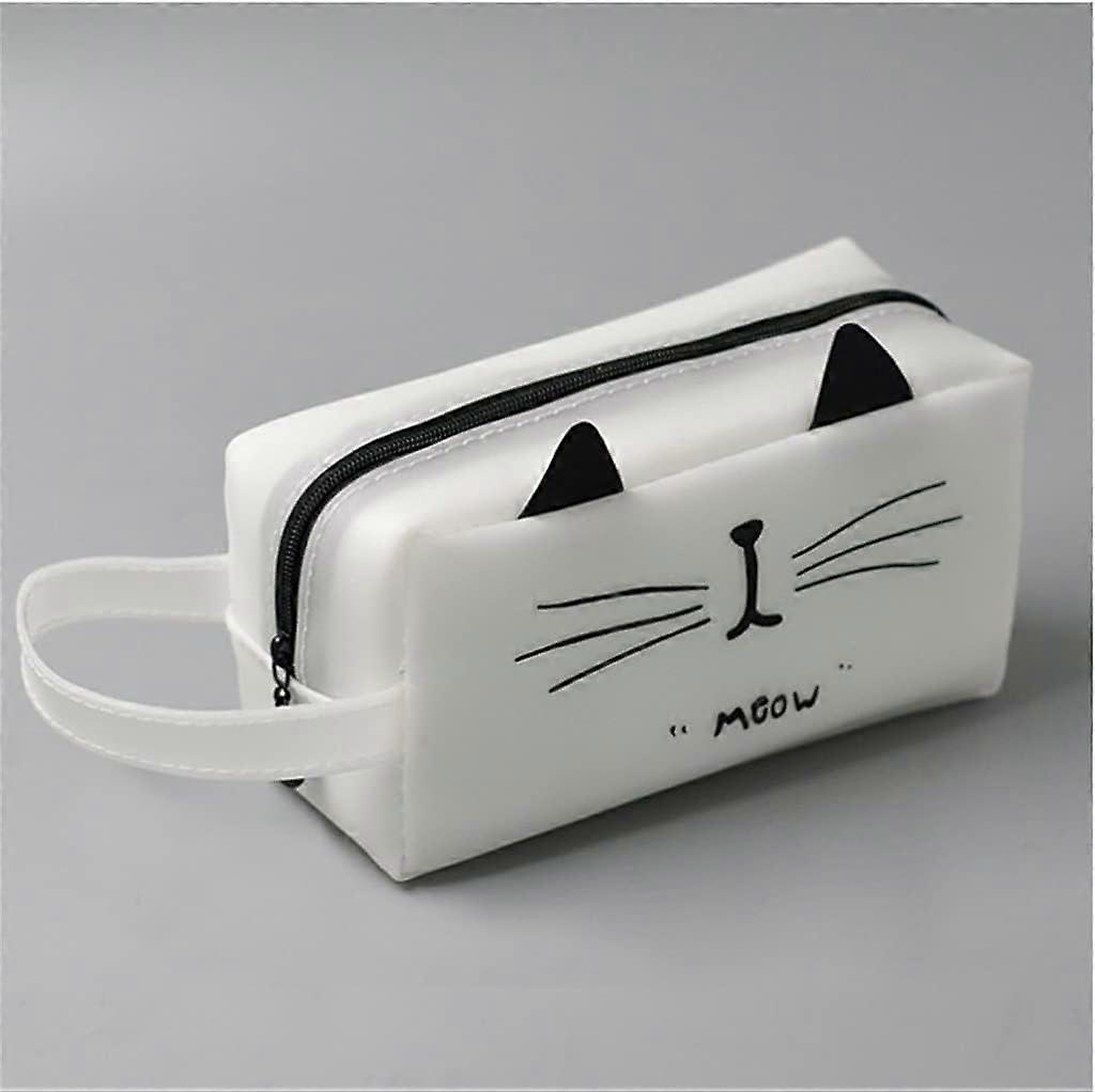 LINJOU Cute Pencil case, Stationery Storage Bag Portable (White Cat)