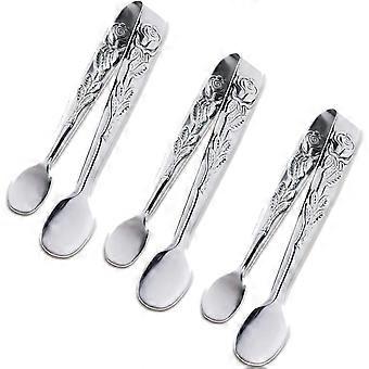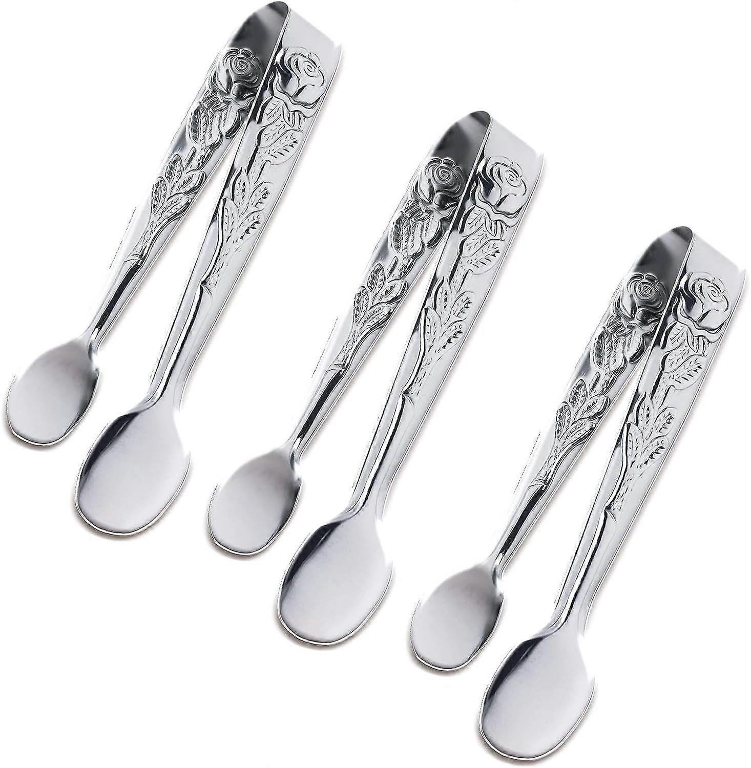 LINJOU 3PCS Mini Serving Tongs, 4Inch Rose Stainless Steel Sugar Cube Tongs, Sliver Small Ice Tongs(Silver)
