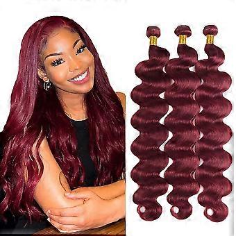 99J Burgundinpunaiset Laineet Aitohiusniput 26-28-30 Tuumaiset Brasilialaiset Hiustenpidennykset, 3 Pakkaus