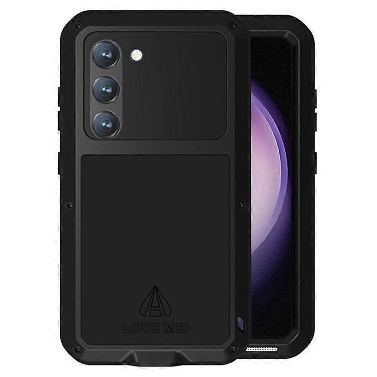 LOVE MEI Compatible For Samsung Galaxy S23 Shockproof Anti-drop Phone Case Silicone + Metal Cover with Tempered Glass Film